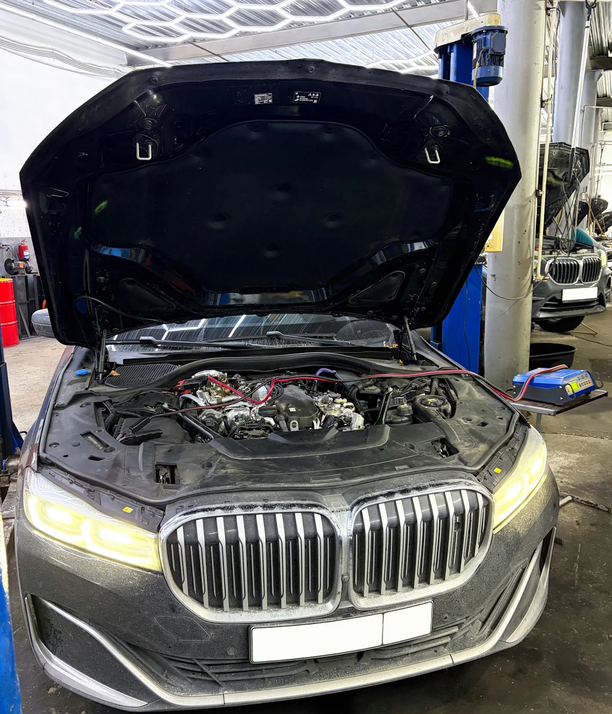 В технический центр Мир БМВ обратился владелец представительского седана BMW 740d G11 для обслуживания и ремонта подвески, а также диагностики электрики и двигателя автомобиля.